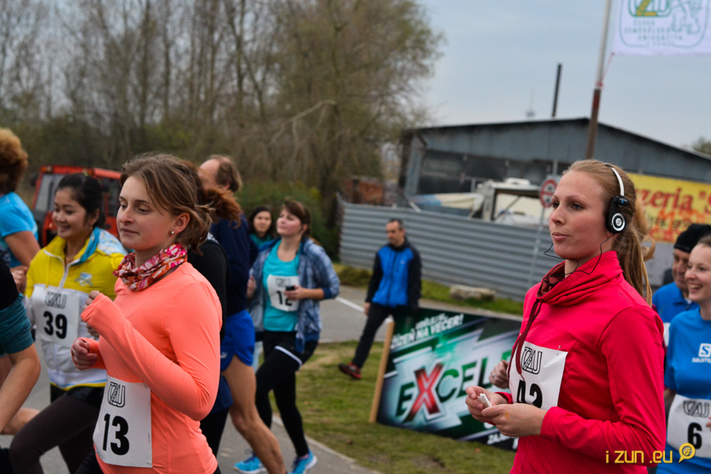 Došly jsme na „místo činu“. Pár set metrů od KTV přes silnici se tyčila brána s nápisy Start/Cíl. Kolem se to jen hemžilo nabuzenými sportovci. Lehkoatletická abeceda, klus, sprint a protahování. Přes Mončiny protesty jsem jí připnula startovní číslo a snažila se ji trochu namotivovat. Marně. „Ses úplně zbláznila? Fajn, tak já si to poběžím hodinku a budu úplně poslední.“ Zkoušela jsem ji uklidnit, že se jedná jen o školní závod, že je tu jen pár lidí od nás a několik vytrvalců, kteří to běhají každý rok. Když tu se objevilo několik modrých bund s bílými písmeny CZE na zádech. Navštívilo nás několik kluků z reprezentace. Probodl mě vražedný pohled. Naštěstí moderátor ohlásil „Ženy a veteránky, tři minuty do startu.“ Jako „párem volů“ jsem dostala svou, závody nepolíbenou, kamarádku na start.