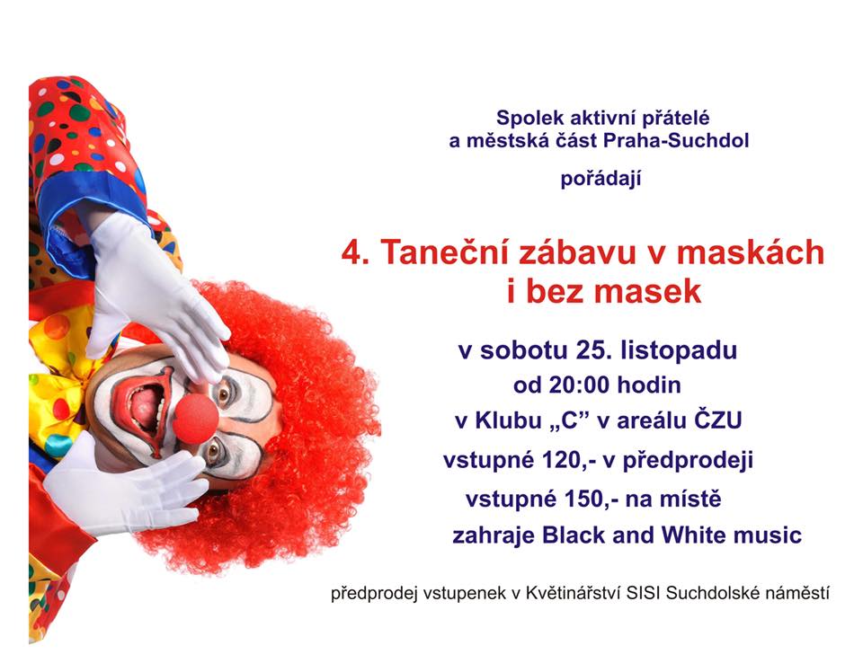 Céčko v sobotu 25. listopadu rozzáří desítky masek. Spolek aktivní přátelé a Městská část Praha- Suchdol již počtvrté pořádají Taneční zábavu v maskách i bez masek.