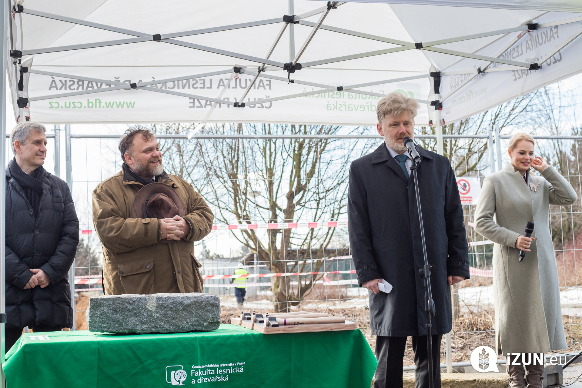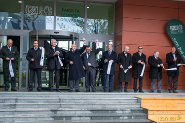 Přesně v 10:00 zazněla slavnostní znělka trubačů FLD, po níž následoval proslov nového rektora ČZU, prof. Ing. Petra Skleničky, CSc., který neopomněl zmínit, že tento projekt byl zahájen a rozpracován ještě za předchozího vedení univerzity (emeritní rektor, prof. Ing. Jiří Balík, CSc., dr. h. c. zde byl též přítomen). Slova se poté ujal děkan FLD, prof. Ing. Marek Turčáni, PhD.