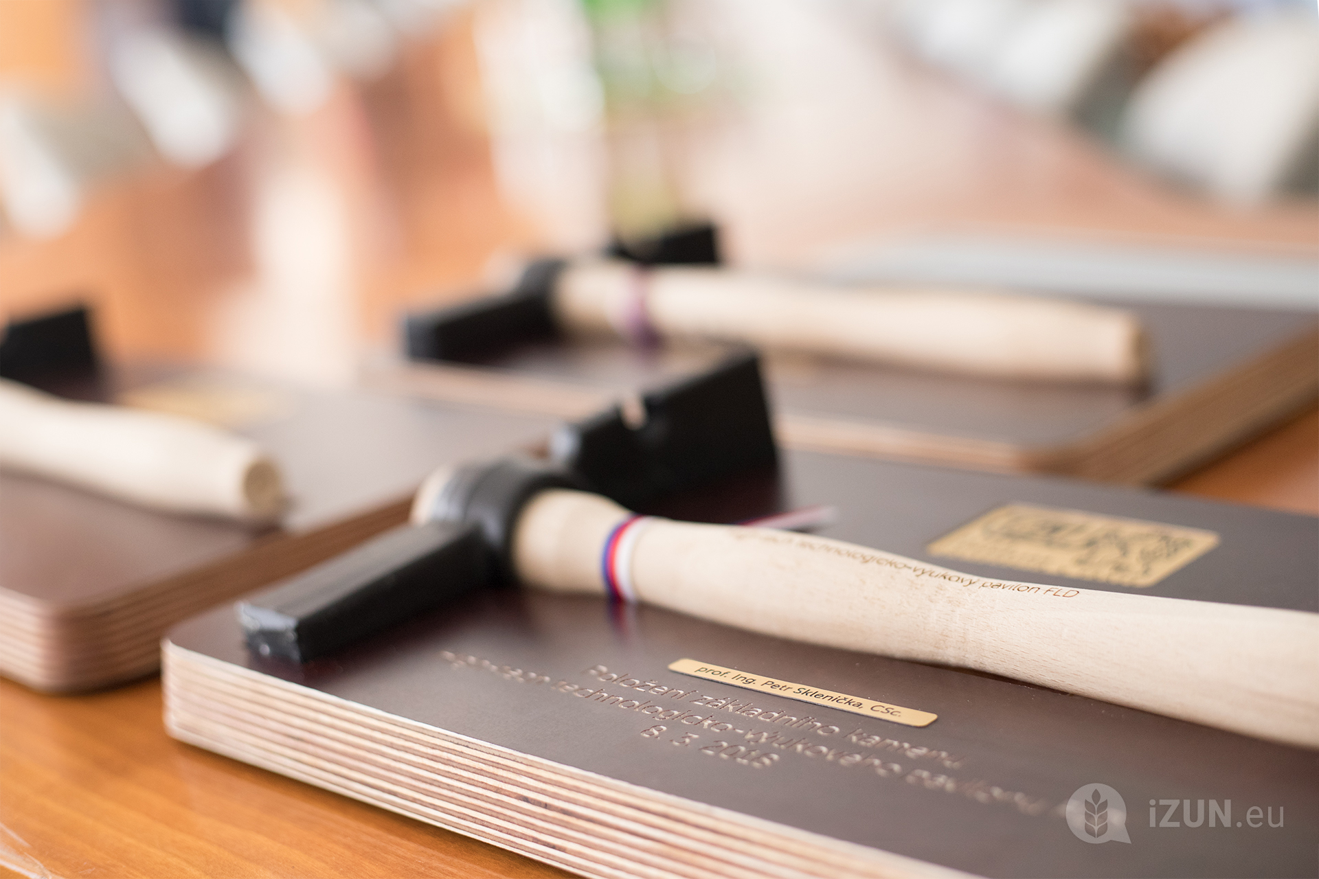 Následně se již oba pánové společně se zástupcem Metrostavu Ing. Jiřím Andělem chopili kladívek a opět za zvuku fanfáry trubačů byl slavnostně poklepán základní kámen nové budovy.