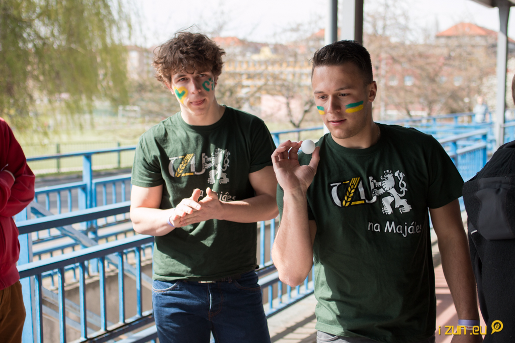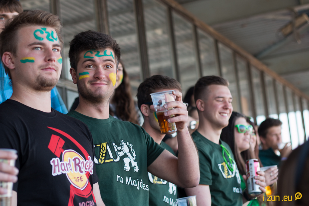 Brány atletického stadionu SK Slavia Praha se oficiálně otevřely ve 14 hod, aby těsně před půl třetí dorazil natěšený dav fanoušků ČZU. Ti zabrali celou levou část hlavní tribuny a už při letmém pohledu na ochozy bylo jasné, který tábor fanoušků letošní bitvu ovládne. Během celého turnaje žádná jiná škola prakticky vůbec nepodporovala svůj tým, a tak jsme byli svědky toho, jak v zápasech bez účasti našeho týmu bylo na stadionu téměř hrobové ticho. Pravda o tom, že ČZU má nejlepší vysokoškolské fanoušky, se mnohokrát během zápasů potvrdila.