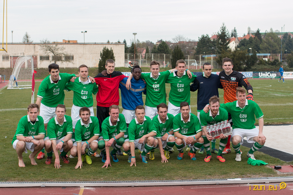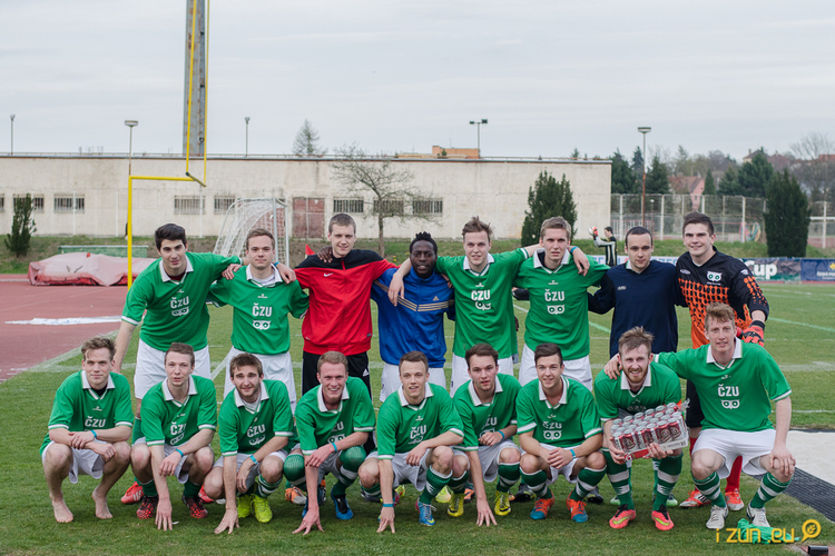 První zápas, do kterého nastoupila ČZU proti ČVUT, začal ve 14:50. Na začátku zápasu byla na našem týmu, který před turnajem absolvoval pouze jeden společný trénink, znát nerozhranost. Postupem času se však začal dostávat do hry a získávat mírnou územní převahu proti svému soupeři. Když už se zdálo, že v polovině první půle půjdeme do vedení po krásné akci a centru z pravé strany, na jejímž konci byla hlavička a gól v síti ČVUT, zchladil nadšení fanoušků ČZU praporek pomezního rozhodčího kvůli ofsajdu. Po zbytek první půle se hra vyrovnala a oba soupěři se hlavně snažili neudělat chybu.