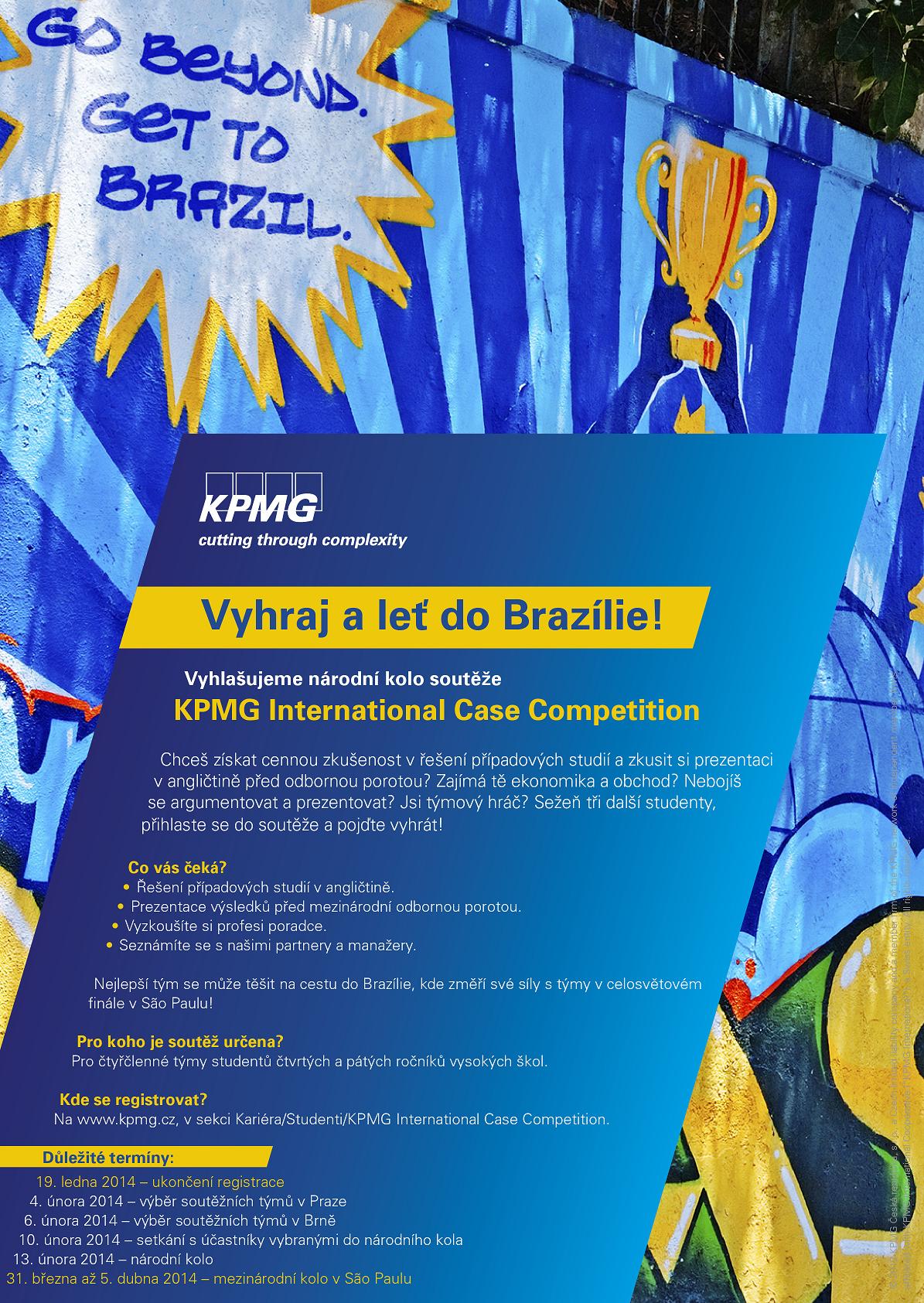 KPMG International Case Competition probíhá ve dvou kolech – národním a mezinárodním. Své čtyřčlenné týmy můžete registrovat nejpozději 19. ledna 2014 na webu KPMG Česká republika. Odborná porota vybere podle zaslaných přihlášek (4. února 2014 v Praze a o dva dny později v Brně) soutěžní týmy, které se 13. února 2014 představí v národním kole. Jeho vítězové pak budou od 31. března do 5. dubna 2014 reprezentovat Českou republiku v kole mezinárodním.