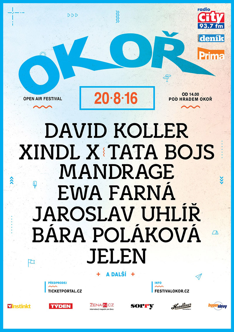 Prvním červnovým dnem odstartoval předprodej na FESTIVAL OKOŘ, který se tradičně koná předposlední srpnovou sobotu 20. 8. 2016. Letošní šestnáctý ročník přivítá úplně poprvé Báru Polákovou, Tata Bojs, Ewu Farnou & Band a skupinu Jelen. Na programu jsou samozřejmě i jedny z největších hvězd současné pop scény – David Koller, Xindl X, Mandrage. Protože FESTIVAL OKOŘ je festivalem rodinným, tak všem přítomným zazpívá největší hity i Jaroslav Uhlíř.