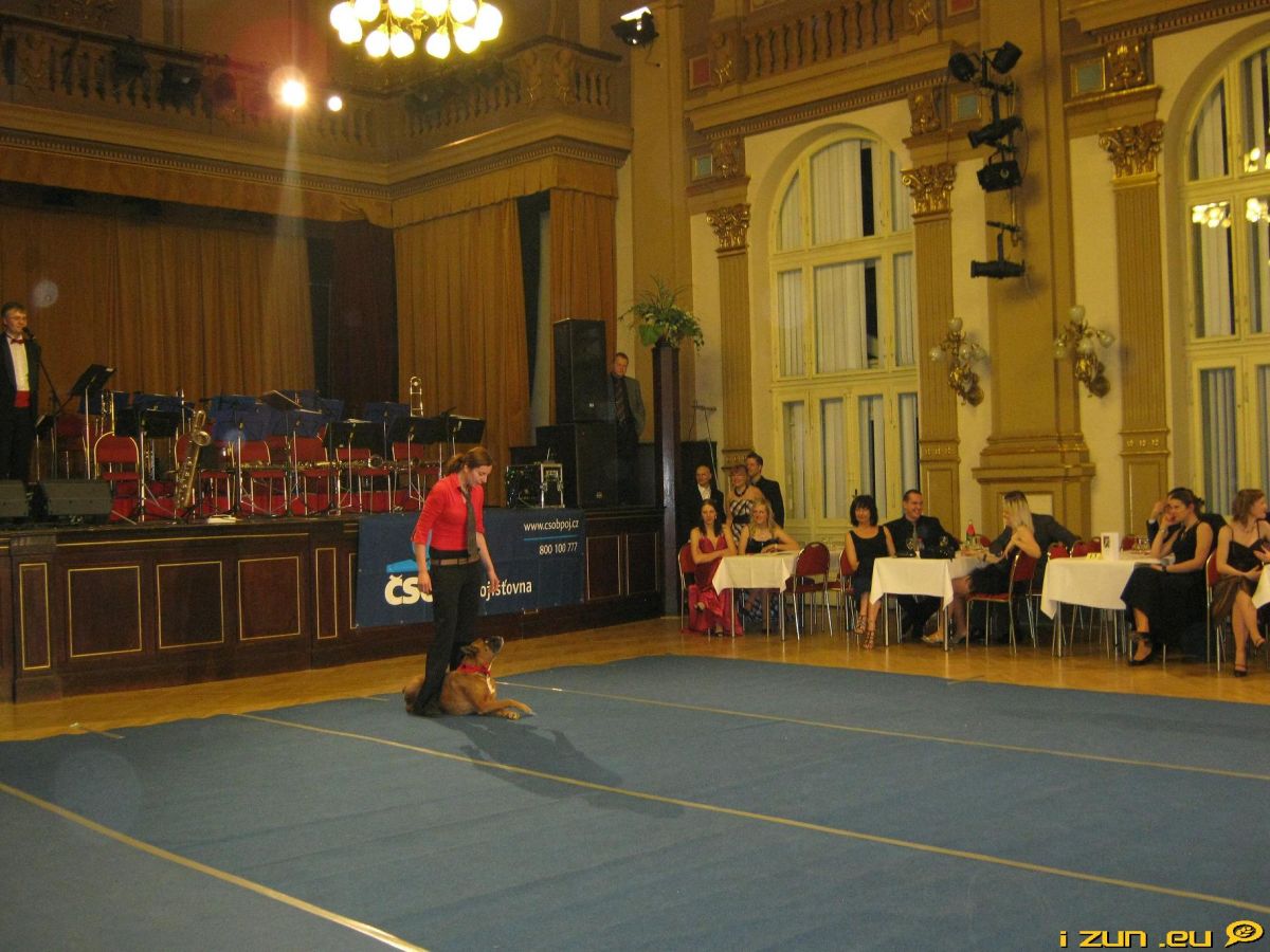 Na půlnoc jsme se již nemohli dočkat. Slíbené překvapení nás ohromilo. Příprava modrých koberců na parketu chvilku trvala, ale vydrželi jsme. V programu jsme našli zkratku vystoupení DDS, což nám opravdu nic neříkalo. Teď již víme, že jde o Dog dancing show. Viděli jsem celkem čtyři vystoupení od dvou mladých dam a jejich čtyřnohých kamarádů.