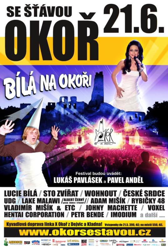 V pořadí již 16. ročník tohoto festivalu pro nás připravil mnoho učinkujících, mezi něž patří třeba STO ZVÍŘAT, LUCIE BÍLÁ, UDG, WOHNOUT, RYBIČKY 48 a další. Celým festivalem bude provázet Pavel Anděl a Lukáš Pavlásek, známý z pořadu Na stojáka a z reklam na T-Mobile. O zábavu tedy nebude nouze. Ten kluk je vážně srandista. Bude Lukáš Pavlásek oblečen jako Bílá paní? Na plakátu tomu tak je, sice je asi vyrobený v Malování, ale je. Můžeme jedině doufat.