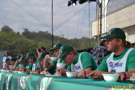 Ptáte se jak letos dopadla soutěž v pojídání trnkových knedlíků? Pojďme mrknout na tuto typickou disciplínu Trnkobraní. Nejprve si řekněme, čím se vlastně soutěžící v této disciplíně celou jednu hodinu nacpávají. Hmotnost trnky před uvařením včetně těsta je 30 g. Jde o spařované těsto, hrubou mouku, žloutky, mléko se špetkou soli. Pecky se nejí, protože slouží jako důkaz konzumace. Povolenými přílohami je cukr a omastek. Soutěžící během soutěže mohou cvičit, chodit po podiu a povolit si opasek. Nesmí však kouřit, pít či opustit pódium. Podmínkou soutěže je sníst alespoň 30 švestkových knedlíků. Pokud tuto podmínku soutěžící nedodrží, musí si počet snědených knedlíků zaplatit.
