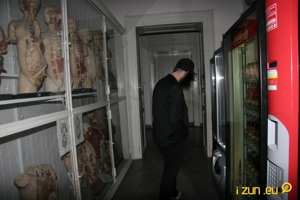 Téměř všichni studenti zmizeli v budově s názvem Anatomický ústav fakulty všeobecného lékařství Univerzity Karlovy. Lidé kolem mě hovořili o nějaké Anče, která je fakt krutá. Představil jsem si borku v bílém plášti, z pod něhož vykukuje křivák, na krku má punkerské ostny a při vyrušení v hodině hází po studentech skalpely. Ukázalo se ale, že krutá Anča je pouze pseudonym pro předmět Anatomie, který je zde všudypřítomný. Vniknutí proběhlo nepozorovaně a průzkum mohl začít. Krůůůglkr, ozvalo se najednou z mého ventriculusu. Před návštěvou výstavky s lidskými těly váhám, zda jíst. Ale ventriculus je silnější. Jdu k automatu. Dobrůtky. Bagety, kola, nějaká ta tyčka. Kupuji od každého trochu a ve chvíli, když se s nákupem otočím, vše mi úlekem vypadne z rukou. Do výloh automatů a na mě čumí asi 11 mrtvol a čekají, co si dám.