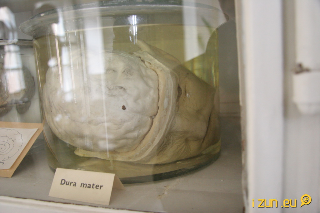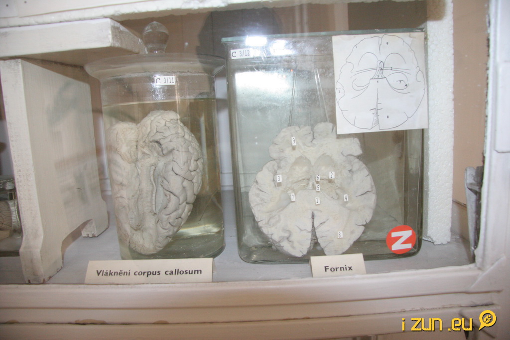 V tu chvíli se začala bageta hlásit o pozornost a evidentně to taky chtěla vidět. Zamítá se. Capreolus capreolus, Dura mater, Fronix a další, to vše na mě čučelo z vitrín. Chvíli jsem hrál s jednou hlavou hru Kdo dřív mrkne a když jsem vyhrál, rozhodl jsem se pokračovat dál.
