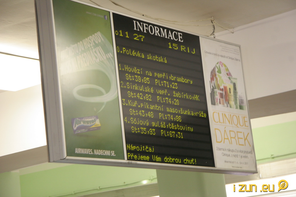 Z toho běhu mi zase vyhládlo. Dal bych si něco k jídlu. Přicházím k jedné studentce o pár bloků dál a ptám se jí na cestu do menzy. Slečna se na mě hezky usmála a požádala mě o 30 Kč. Co? Koukám na ní vykuleně. Nehnula ani brvou a natáhla ručku. Vložil sem jí tam přesně 30 Kč. „Vidíš támhle tu ceduli OBĚDY? Tak tam to je.“ Cedule byla přímo za mými zády.