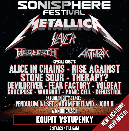 Hned na úvod absolutní bomba! Velká čtyřka se poprvé v historii sejde na jednom pódiu! Srdce každého trashmetalového fanouška musí zaplesat při pohledu na headlinery tohoto mezinárodního festivalu - Metallica, Megadeth, Slayer a Anthrax.