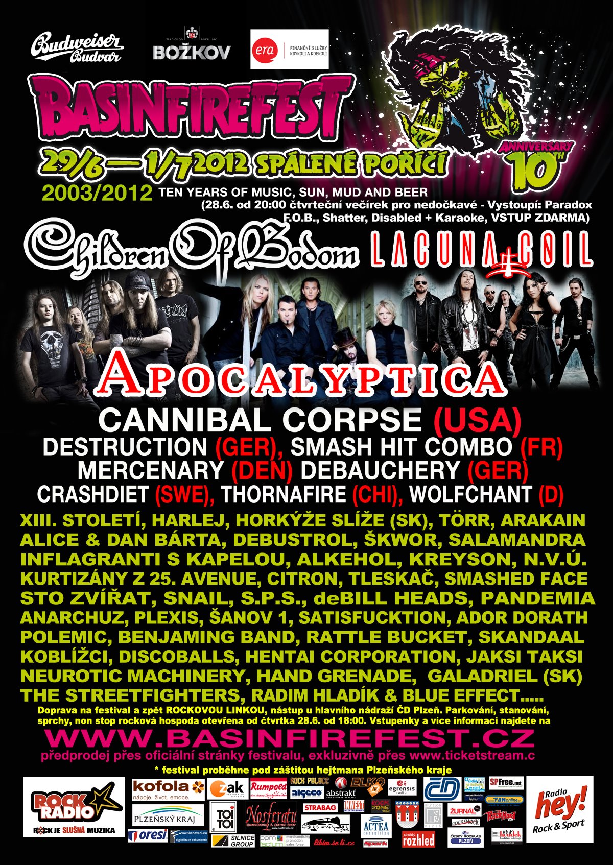 Tradiční metalovo-punkovo-skáčkový nářez slaví letos kulatý desátý ročník v čele s finskými CHILDREN OF BOTTOM. Krom toho se můžete těšit na zahraniční hvězdy jako LACUNA COIL, DESTRUCTION nebo APOCALYPTICA a chybět nebude česká punková a heavy metalová klasika.