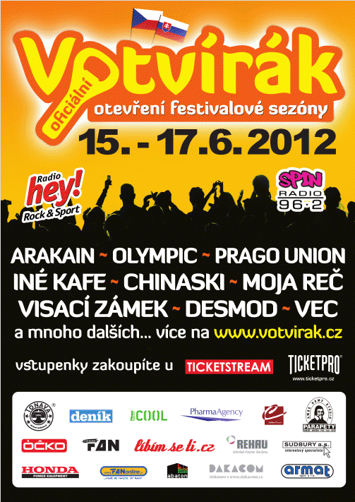 Tradiční symbolické otevření festivalové sezóny opět proběhne nedaleko Prahy. Letos se můžete těšit na 4 stage, z toho jednu čistokrevně rockovou a jednu hip hopovou. V sobotu pak nebude chybět člověk, který rozpumpoval tisíce z vás na letošní Miss Agro - Jaroslav Uhlíř. Dále se můžete těšit třeba na slovenské punkáče Iné Kafe, klasiky české scény jako jsou Olympic, Mňága a Žďorp nebo představitelé těch mladších kapel v podobě MIG 21, Mandrage nebo Chinaski. Za dvě stovky v předprodeji si myslím, že je to hodně muziky. :-)