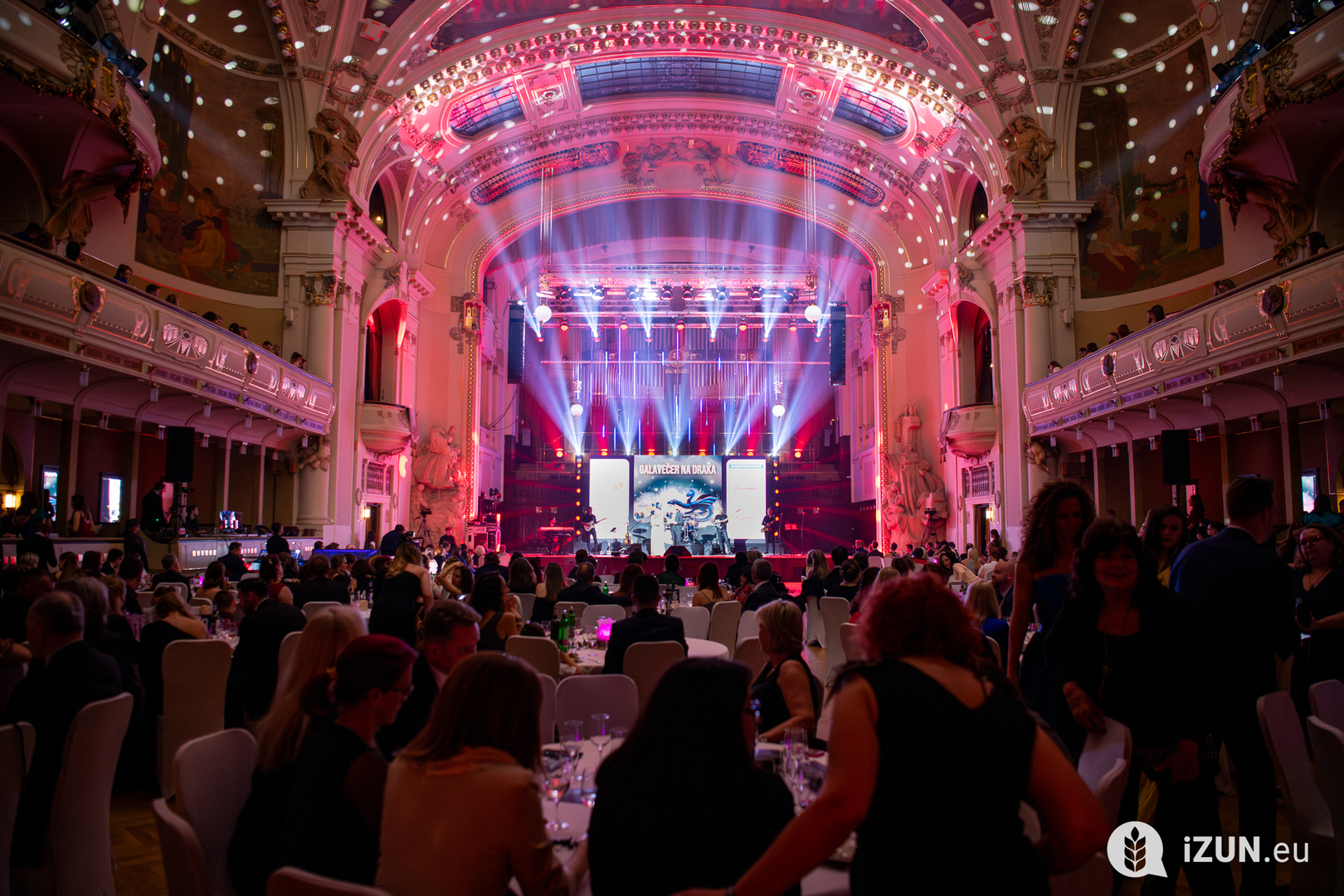 To, co započalo na Kruhové hale ČZU, se posunulo až do Smetanova sálu Obecního domu, který Vám při příchodu doslova bral dech. Již tak krásný secesní sál se proměnil pomocí hry světel a stínů, jako byste byli ve třpytivé dračí jeskyni, a tahle podívaná dokázala lahodit oku opravdu celý večer.
