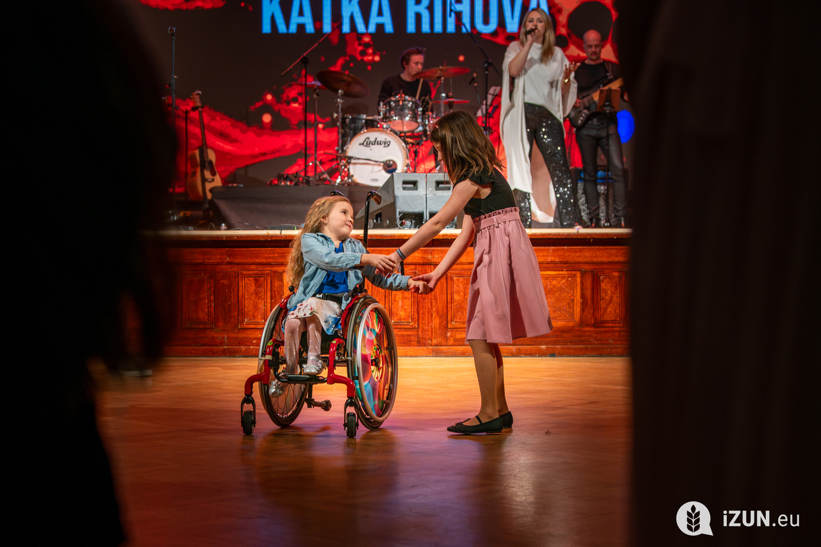 Svůj hlas, jako štít, zapůjčilo pro tento večer hned několik známých tváří. Hned zkraje večera to byla Katka Říhová, kterou mohli mnozí poznat po sluchu z Ranní show na Evropě 2, kde už nějaký čas moderuje. Díky jednomu ze svých kolegů nedávno obohatila svět i o svůj skrývaný talent, ze kterého jsme se nyní mohli těšit i my. Již v tuto chvíli se začal plnit parket tančícími páry i motorizovanými dětmi na vozíčcích v rytmu společenských tanců.