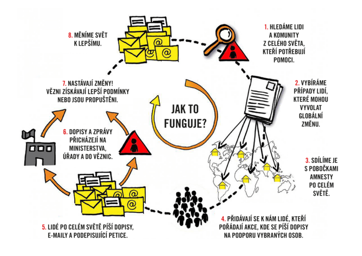 Zdá se, že je to hodně abstraktní věc. Někdo si může položit otázku: ,,Jak já tady v Česku můžu ovlivnit, co se děje někde za hranicemi daleko odsud?”. Ale představte si, že to s vámi píše dalších několik tisíc lidí, takže ve výsledku do prezidentských, prokurátorských a soudních kanceláří přichází statisíce dopisů. Taková čísla už jsou ohromná a dokáží udělat změny. Přinejmenším si dotyční uvědomí, že daný vězeň je ohniskem celosvětové pozornosti a to nemohou přehlížet, protože právě v očích zbytku světa chtějí vypadat dobře. Abych to vysvětlila na příkladu, vrátím se k Saúdské Arábii. Jak už jsem zmínila, ženská práva jsou tam krutě porušována a ženy, které se proti režimu postaví, jsou vězněny a trestány. Před dvěma roky ale byla jedna bojovnice za ženská práva propuštěna právě díky Maratonu psaní dopisů, neboť pokud chtěla Saúdská Arábie zůstat součástí celosvětového obchodu, musela za účelem zachování dobrých obchodních styků polevit a neprávem vězněnou ženu propustit.