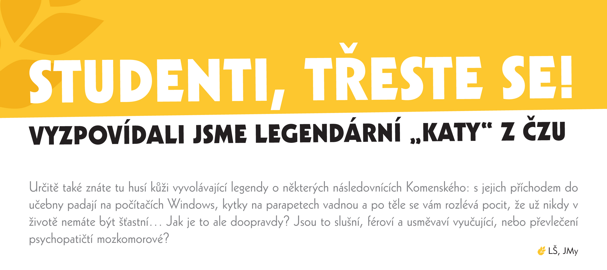 Přes rozhovor s Romanem Vaňkem, novou kvestorkou ČZU či recept na famózního naloženého bažata se dostaneme k dalšímu třaskavému tématu. Vyzpovídali jsme totiž legendární katy. Kantory, kteří podle Vás už od pohledu vzbuzují strach a u zkoušky si s nimi není radno zahrávat! Co nám v rozhovoru prozradí?