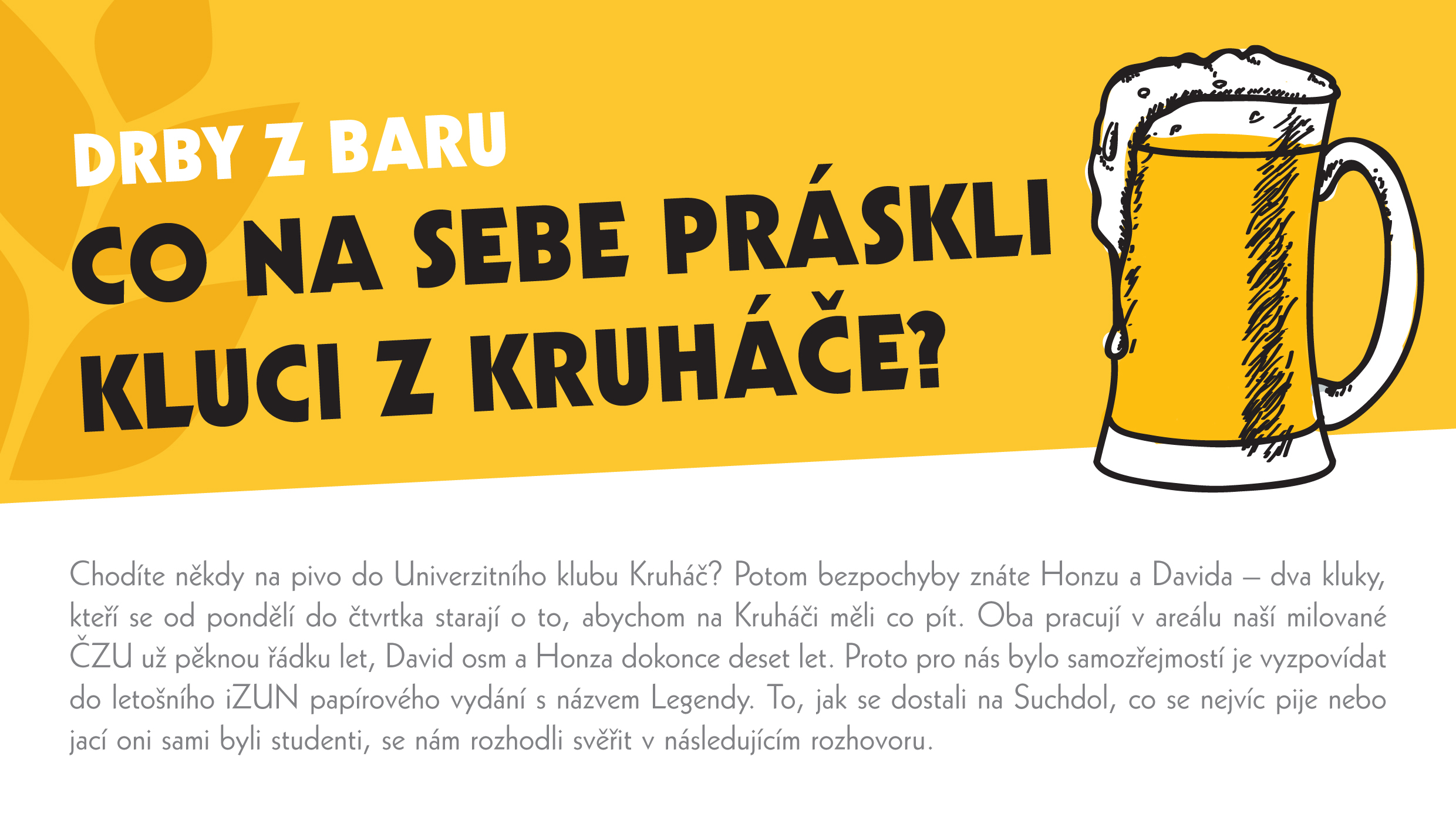 Na odlehčení se pak na závěr podíváme do útrob Univerzitního klubu Kruháč, kam jsme zašli na jedno za Honzou a Davidem, místními inventáři. A bude řeč i o lesácích!