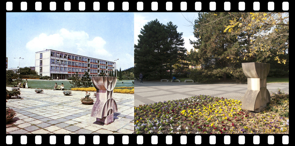 Stromy ten betonový areál časem pěkně zútulnily.