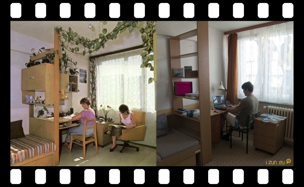 Tak teda, moja izba na koleji vyzerala (už som odtiaľ ušla) zariadením horšie ako tá pred mnoho rokmi... :D