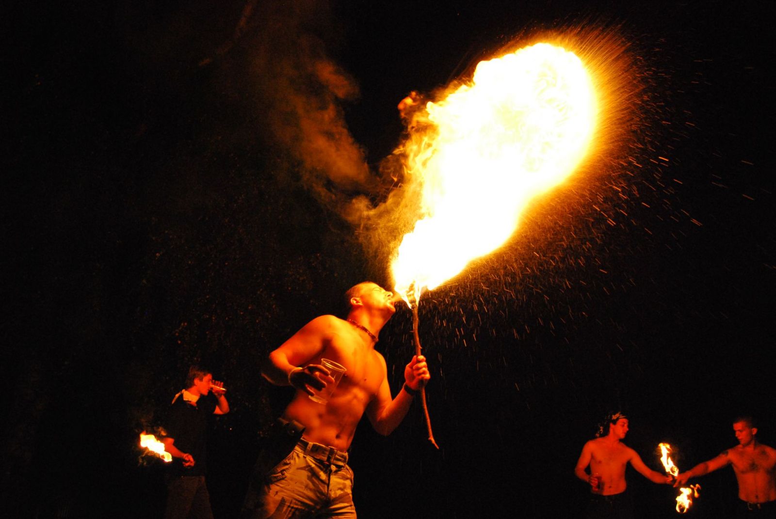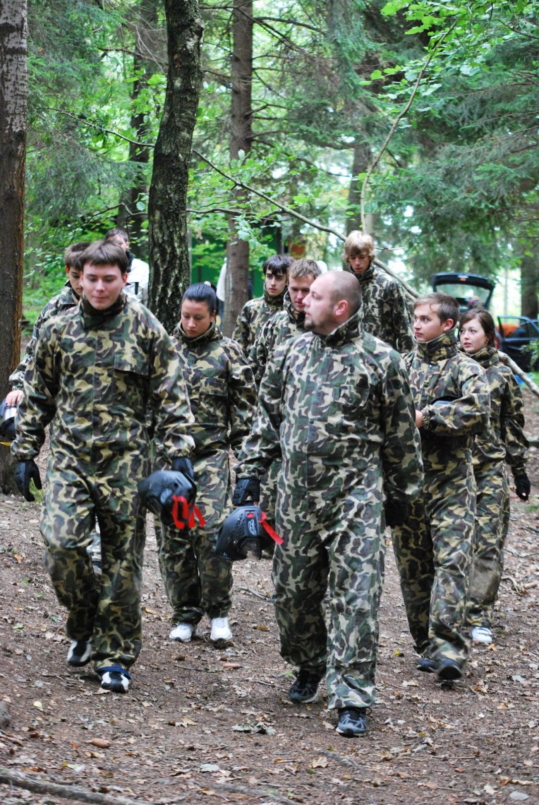 Přijíždíme k rybníku, nad kterým se v kopci tyčí areál, ve kterém akce probíhá. Dorazil jsem zrovna uprostřed bojovky, kde spolu soupeřilo dvanáct týmu o zhruba stejném počtu členů. Na okraji rybníka jsem zahlédl dalšího instruktora, kamaráda Bastyho, uvelebeného v ohromné duši od traktoru. Zamířím přímo k němu, po přivítání a letmém vyhodnocení stavu zásob alkoholu se z lesa vynoří jeden z týmů a šine si to přímo k nám. Sálá z nich dobrá nálada, předchozí soutěž střelba ze vzduchovky se jim vydařila. Po blamáži při soutěži navlékání prezervativu na penis plemenného býka to bylo přesně to povzbuzení, které potřebovali.