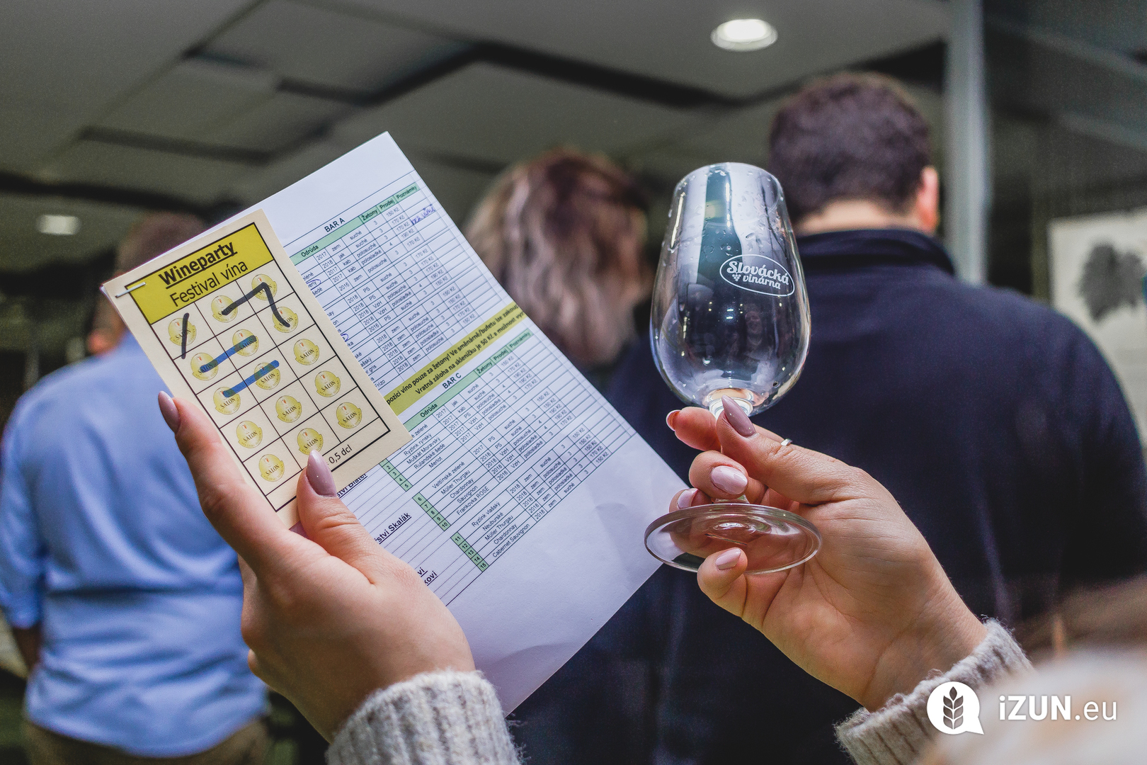 Hodiny odbily sedmou hodinu, návštěvníci byli postupně opáskování, obdarováni programem, degustačním listem a už už rychle běželi nahoru. Po usazení vám dopomohl program, kde jste našli základní informace o degustovaných vínech, které byly rozděleny do čtyř barů. Dále zde byl uveden ceník občerstvení a samozřejmě časový rozvrh celého večera. Nejdůležitější částí byl ale degustační list, čili „koštovníček“. Ten obsahoval 15 bodů, za které jste mohli ochutnávat dle libosti. Každé víno mělo svůj počet bodů. Většina byla za 3 body, ty lepší vás stály body 4. Dále jste museli poskytnout vratnou zálohu padesáti korun za degustační skleničku. Protože známe se, že ano.