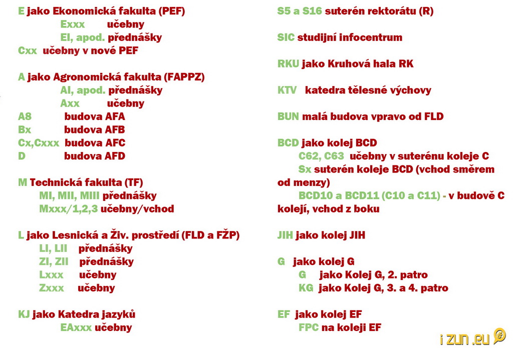 Připravili jsme pro vás jednoduchý plánek a klíč, jak rozluštit umístění jakékoli učebny na ČZU.