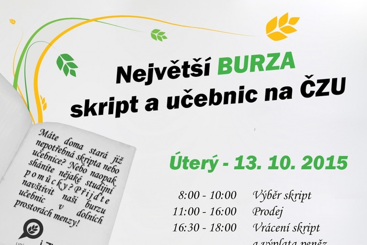Pokud máte doma již neupotřebitelná skripta, která byste rádi prodali, či naopak určitá skripta sháníte, pak je tu Burza právě pro vás.