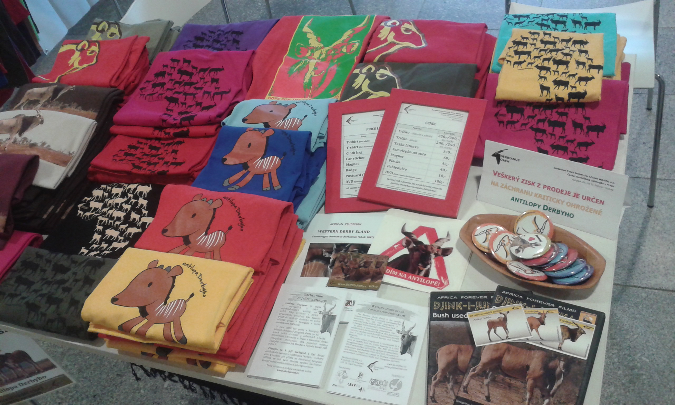 „Zachraňme největší antilopu!" Nápis na plakátě za mými zády nelze přehlédnout. Lidé prochází kolem, někteří se na chvíli pozastaví, jiní lhostejně pokračují dál. Nějaký muž s malou holčičkou přistoupí ke stolu. „Dobrý den. Copak tady máte?" Usměje se a prohlíží si trička. V několika větách vysvětlím, že se jedná o záchranný program ohrožené antilopy Derbyho a že veškerý zisk z prodeje je určen právě na jeho financování. „Aha, to je hezký," pokývá uznale hlavou a obrátí se na dcerku. „Líbí se ti to tričko?" Holčička přikyvuje. „Jo? Tak dobře. Já ti ho vezmu." Podá mi vybrané tričko a vyloví peněženku. „Máte tady vážně pěkný věci. A navíc je to na dobrou věc, to se mi moc líbí." Spokojeně přikývnu a odemykám modrou plechovou kasičku...