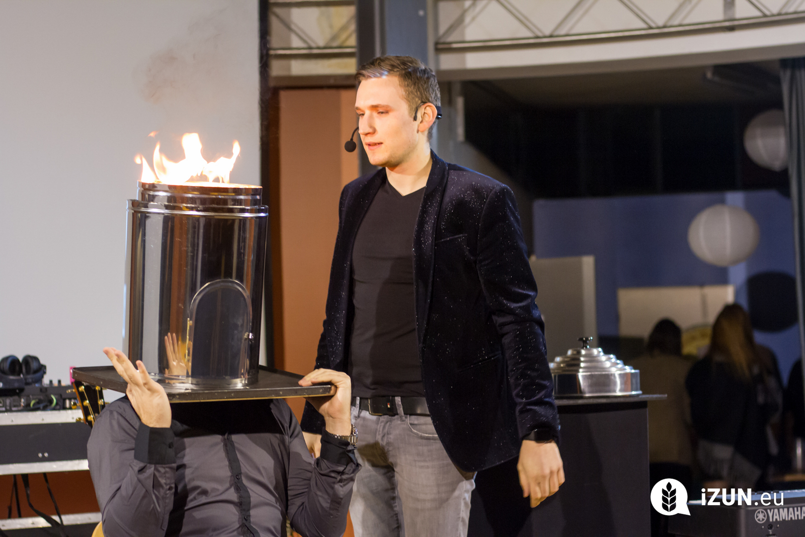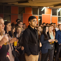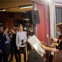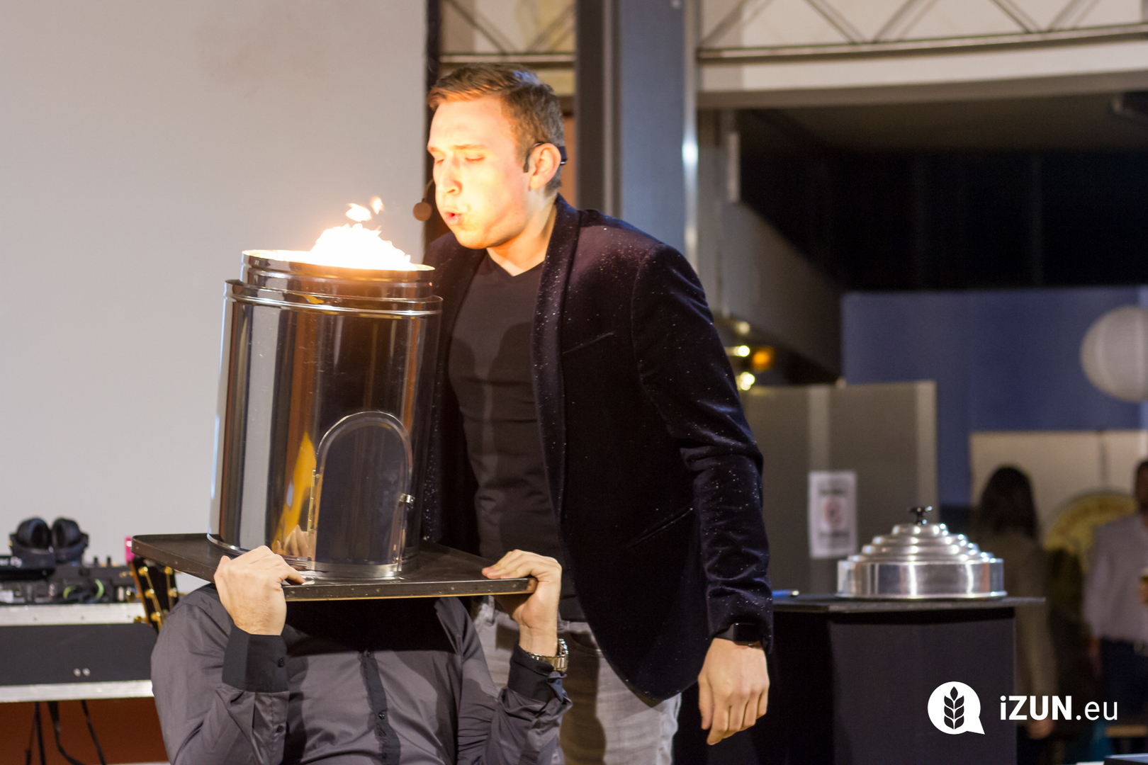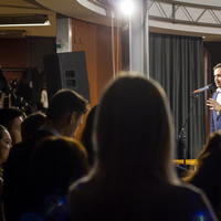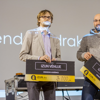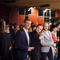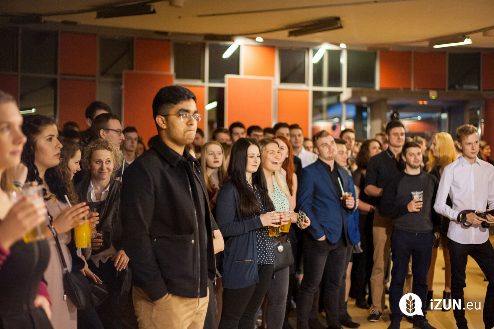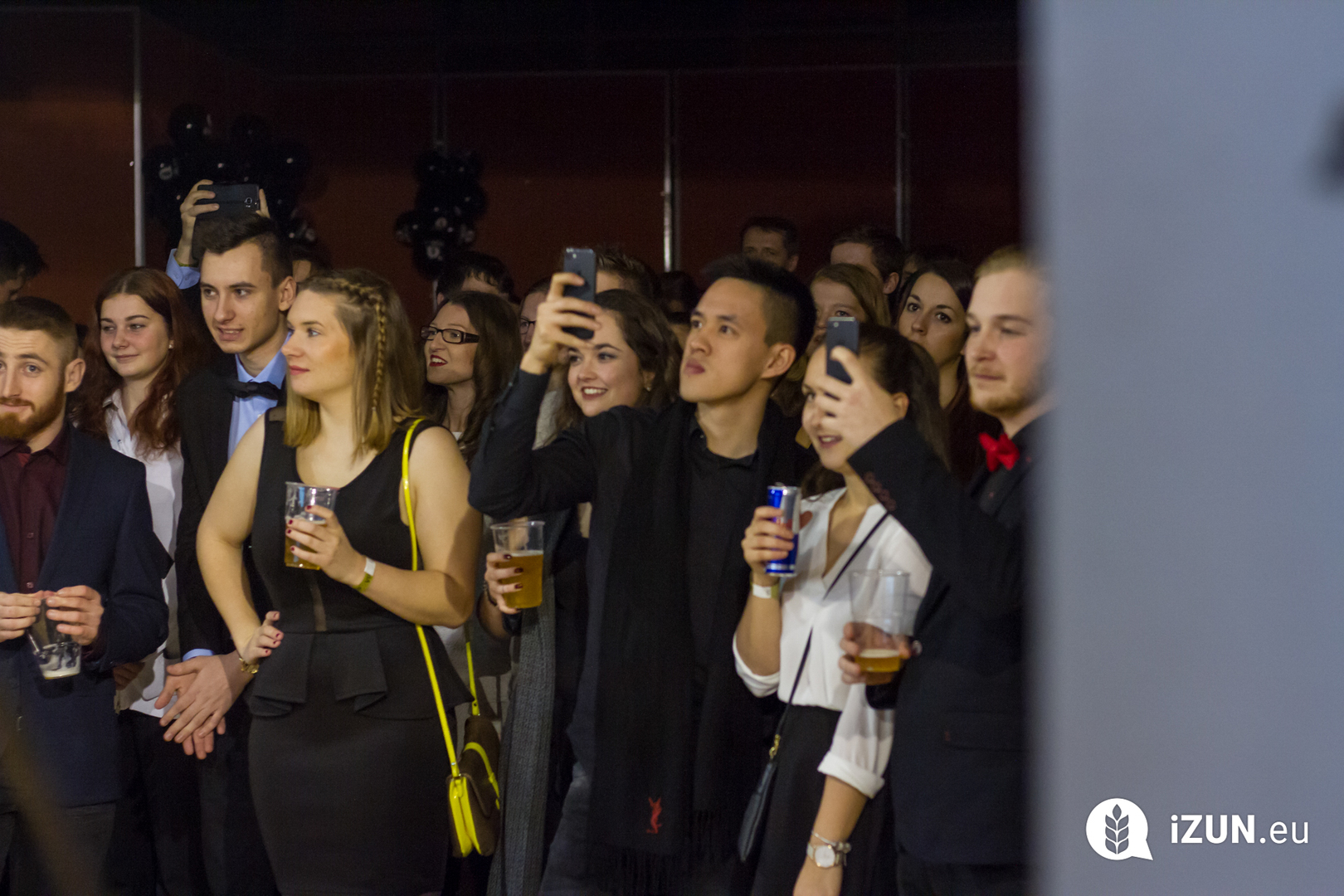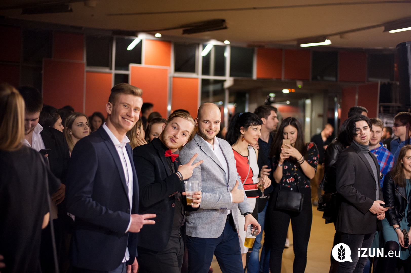 a šestá hodina večerní a já začínal přemýšlet, co si vlastně vezmu na sebe, když jde o takovou velkou událost. Dresscode byl jasně daný, smart casual, jen mi vlastně nebylo úplně jasný, co si pod tím představit. Zběsile jsem začal googlit, ale po větě: „Nesmíte být moc casual, musíte na to jít chytře“, se mi protočily panenky, načež jsem vyházel celou skříň a po důkladném uvážení a špetce beznaděje, jsem si vybral OOTD.V sedm hodin jsem naklusal ke Kruhové hale. Již u vchodu mě uchvátila slavnostní brána z balónků a dovnitř mě vedl zelený koberec. V tuhle chvíli jsem se cítil vážně důležitě. Po příchodu jsem hned vyfasoval skleničku šampíčka, ideální začátek. Jen jsem po chvilce procházení se v sále vlastně nevěděl, co mám dělat, takže jsem nakonec jen stál v rohu jako trubka a sledoval plnící se sál. A že lidí přišlo vážně hodně! Sál se plnil a plnil, až bylo úplně narváno, což mě jako člena iZUNu velice potěšilo.