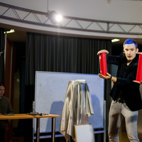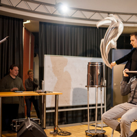 Během minutky pana Vydru nahradil energický, smysly šálící kouzelník a iluzionista Max Magic. Dávám palec hore za spolupráci s obecenstvem (taky co by to bylo za kouzelníka, kdyby si nevybíral asistentky), i jeho výřečnosti, s tím se člověk prostě musí narodit. Předvedl nám pár slušných magických tríčků + občerstvil pár vybraných šťastlivců prvotřídními rohlíky z Tesca. A jo, byl jsem jeden z nich. Kdo si rád láme hlavu nad tím, jak to vlastně sakra udělal, určitě si přišel na své. A kdo k tomu má postoj jako Jaro Slávik, mohl si dojít k Mírovi z JIHu na černou čtrnáctku, nechat si namíchat jeden z řady rozmanitých drinků nebo, pro labužníky a milovníky pozdních svačinek, byl tu i stůl s něčím k snědku.