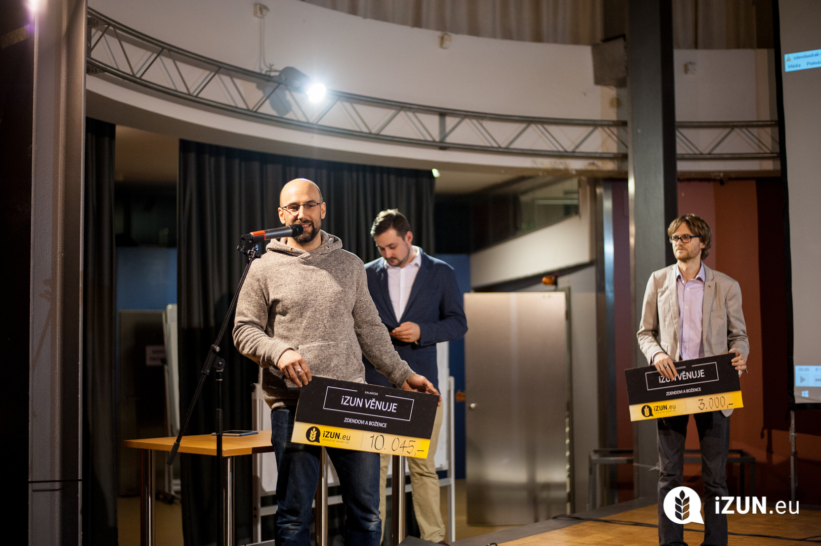 tu všichni sešli a proč se tento Galavečer vlastně pořádá. Objasním to těm lidem, kteří neměli možnost stát se součástí tohoto večera. Začala nová éra iZUNu, do které vlétl ve vší parádě, s novým logem a novým webem, který je naprosto vymazlený. A jako bonus, uskutečnila se sbírka na pomoc Zdendovi a Božence, kteří trpí vzácnou chorobou SMA (spinální svalová atrofie), ve které se vybralo neuvěřitelných 17 897 korun! A pak že studenti nemají srdce a prachy utrácí jen za pivka.