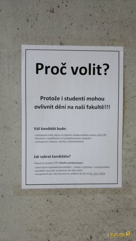 Pokud již na FŽP nějaký ten pátek studujete, víte, že se volby do Akademického senátu konaly poměrně nedávno. Přesněji, před rokem. Co tedy vedlo fakultu k vyhlášení předčasných voleb? Odpověď je jednoduchá. Došli studenti. Respektive členové Akademického senátu ze studentských řad. Odejzd na Erasmus a nástup do zaměstnání způsobily nedostatek členů působících ve studenské komoře tohoto důležitého fakultního orgánu. V nastávajících volbách tedy budete volit pouze dva nové příslušníky Akademického senátu, a to do již zmíněné studentské komory. V roce 2014 pak proběhnou regulérní dvoukomorové volby.
