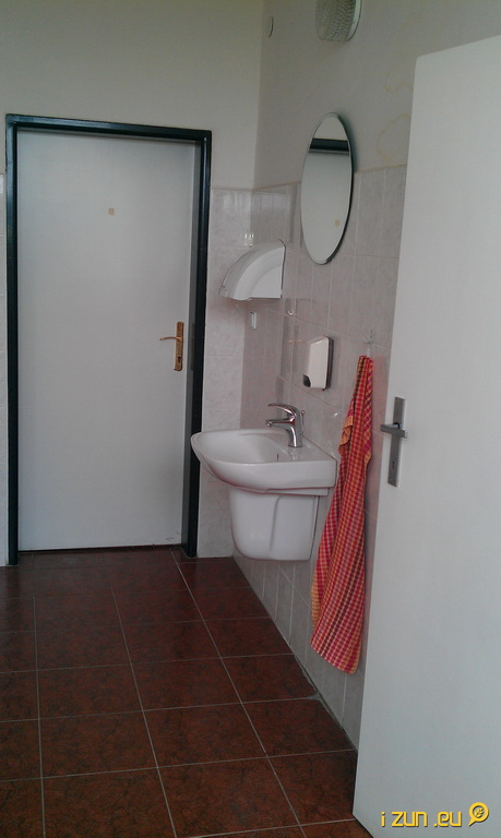 Kantorské intimčo, včetně sprch. Studentům těžko přístupné — je to poznat.